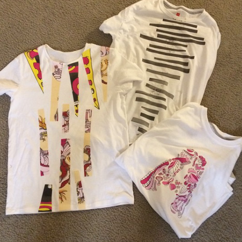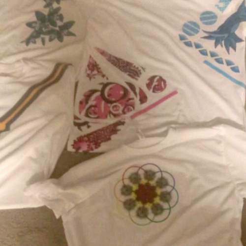 I have designed well over a 100 t-shirt for fun. These were done using iron-on paper with prints form Adobe Illustrator. After printing out on 8.5×11 paper I would cut the designs into different shapes and apply them to t-shirts. Here are some of the designs.