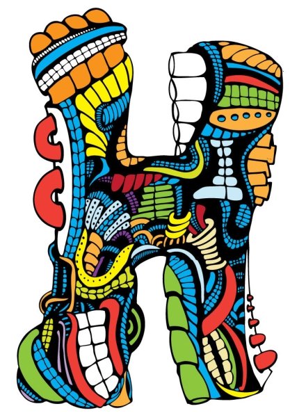 These are illustrated letters that I drew with a sharpie on 8.5×11 or 11×17 paper. I scanned them into Adobe Illustrator, turned them into vector illustrations and added color.